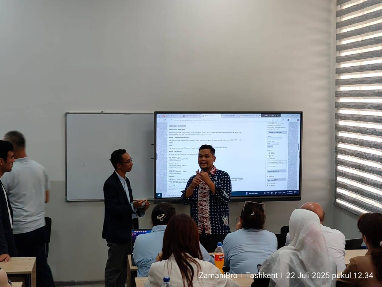 On July 22, 2025, Handoko, an expert in academic research and publishing, conducted a highly impactful Scopus Camp at Alfaganus University in Uzbekistan. The event, held at the university's modern facilities, attracted a diverse group of researchers, faculty members, and students from various regions of Uzbekistan, as well as from neighboring countries, including Azerbaijan, Kazakhstan, and Turkey.